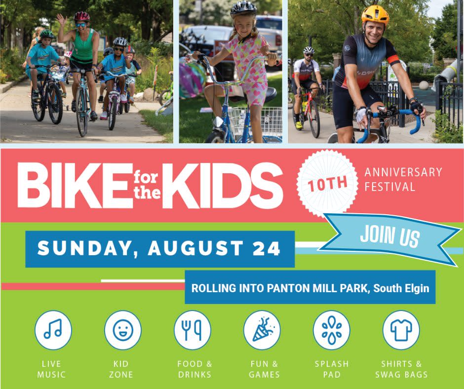 Hop on the bike trail of your choice and meet up in South Elgin at Panton Mill Park for a 10th Anniversary Festival recognizing the cycling and wheeled achievements of children at Easterseals DuPage & Fox Valley. Whether you ride from near or far, you represent a community served by Easterseals.