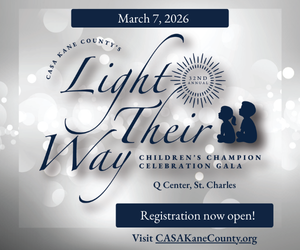 CASA Kane County invites you to join us for the 32nd Annual Children’s Champion Celebration Gala— Light Their Way—on March 7, 2026 at The Q Center. This inspiring evening brings together community and business leaders in support of children in foster care. Guests will enjoy dinner, auctions, raffles, and opportunities to make a meaningful impact. Event proceeds directly support CASA’s mission to provide trained advocates for children who need a voice.