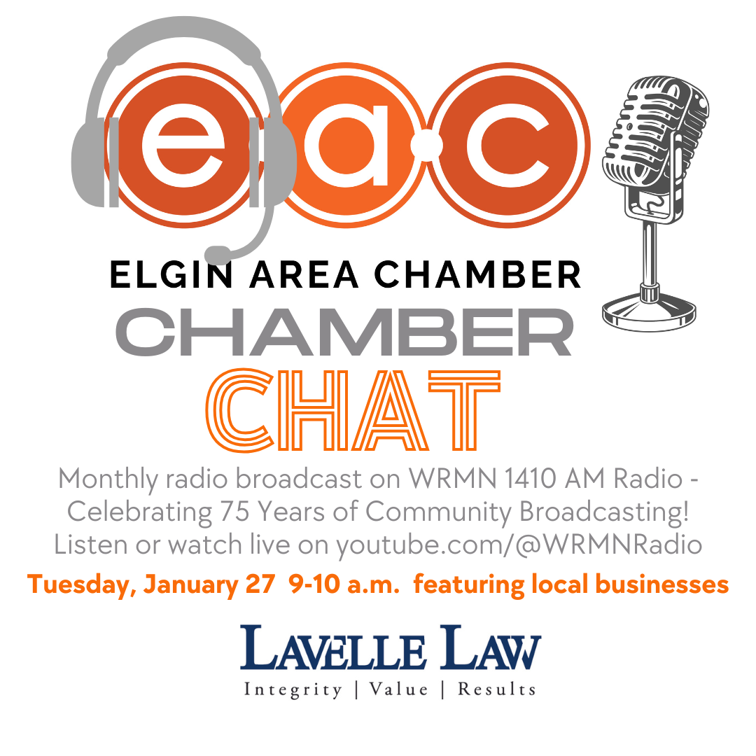 Tune in to WRMN 1410 AM on the fourth Tuesday of every month from 9:05 to 10:00 a.m. to listen to Chamber Chat, the radio show hosted by the Elgin Area Chamber of Commerce President & CEO, Carol Gieske. You can listen to the show or watch it live on YouTube.