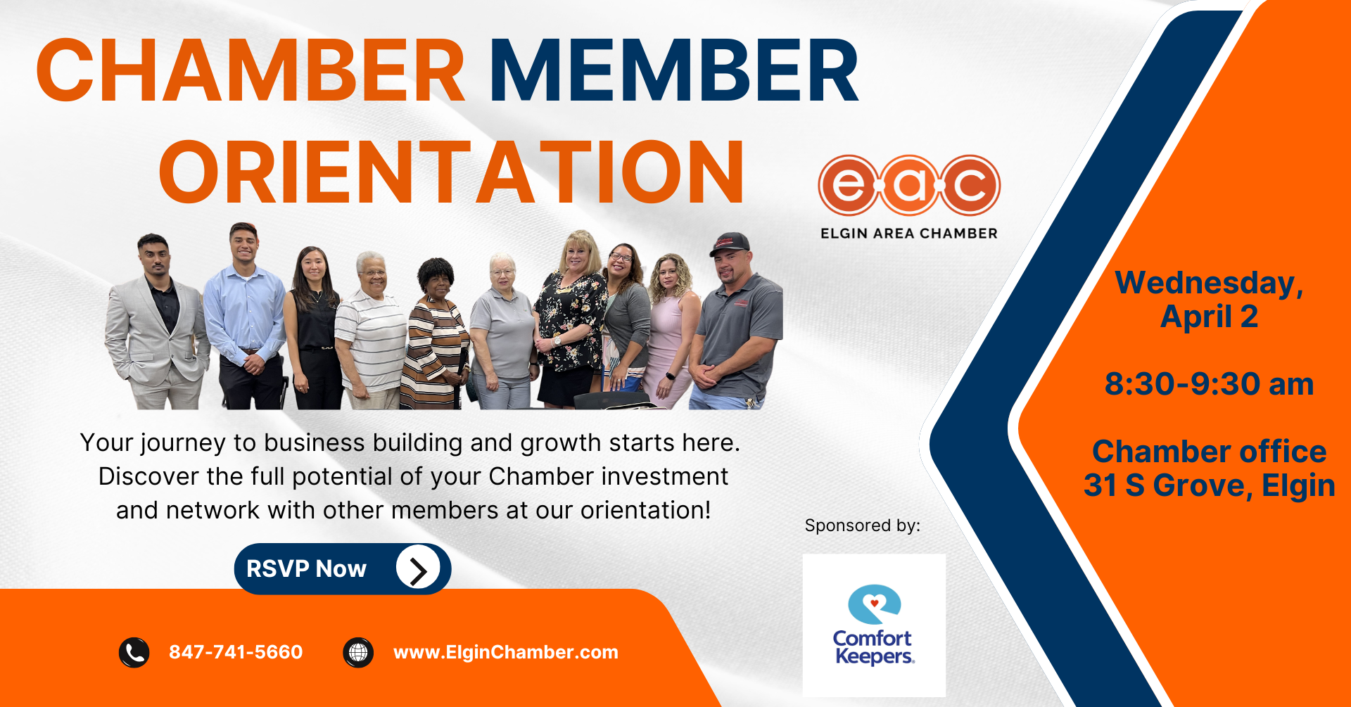 Discover the full potential of your Chamber investment at our Member Orientation for new and existing businesses. Join us for a continental breakfast sponsored by Comfort Keepers, and you'll meet Chamber staff and members. You'll learn how to maximize your Chamber investment and network with other members over a cup of coffee and danish!