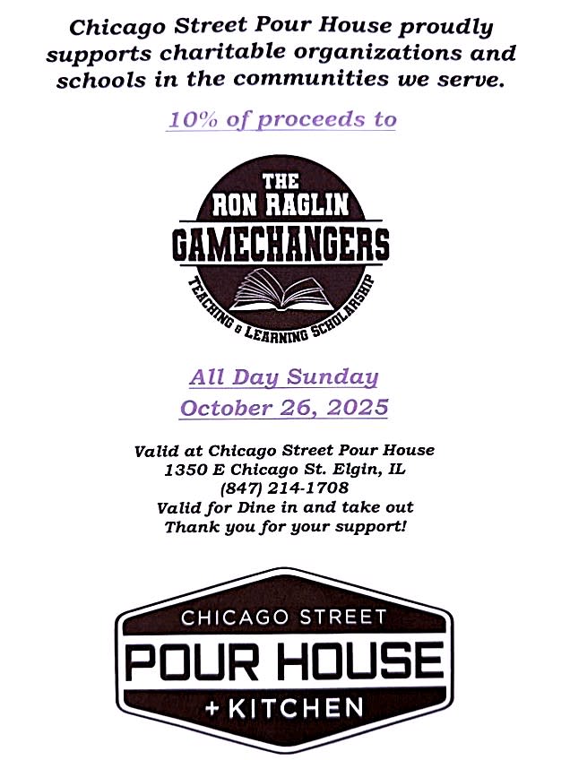 The Ron Raglin Gamechangers Scholarship honors Ron Raglin's legacy as a beloved educator and community leader, with 10% of proceeds from Chicago Street Pour House supporting scholarships for local students who demonstrate leadership, resilience, and a dedication to positive change.
