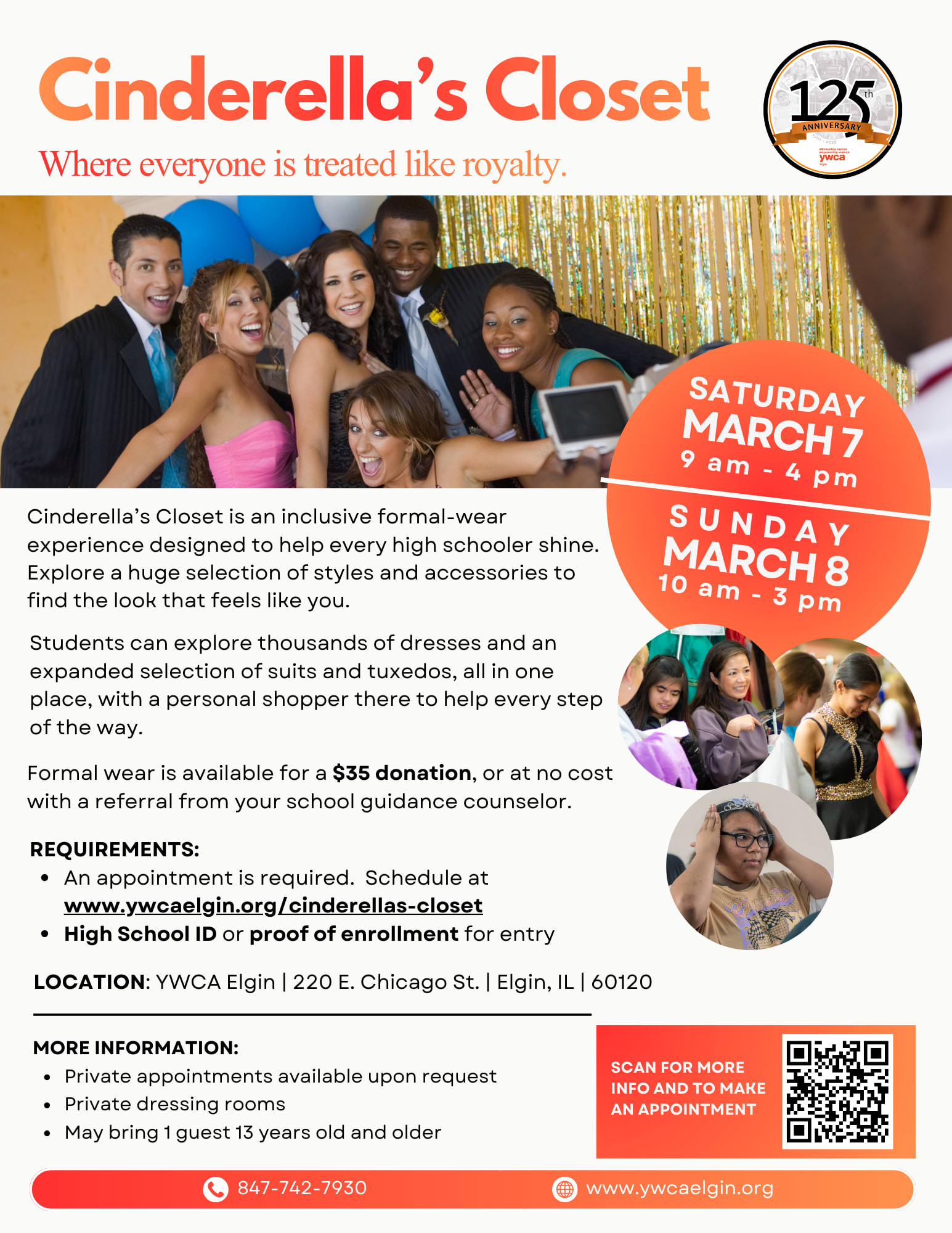 For more information, or to reserve your spot, visit https://www.ywcaelgin.org/cinderellas-closet .