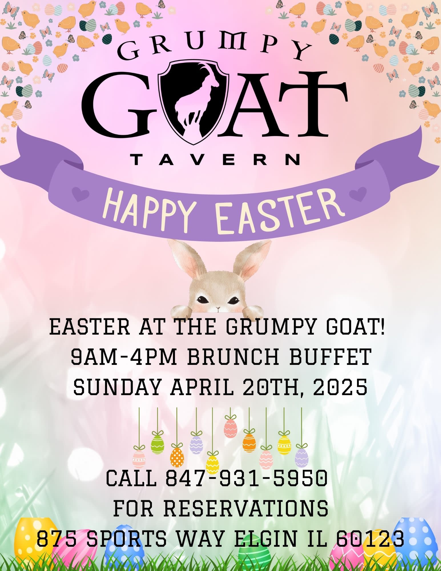 Celebrate Easter with us at the Grumpy Goat Tavern. We are delighted to host our annual Easter celebration once again. Based on the exceptional turnout last year, we have thoughtfully extended the event by an additional hour. We look forward to welcoming you. Reservations and Event Details: