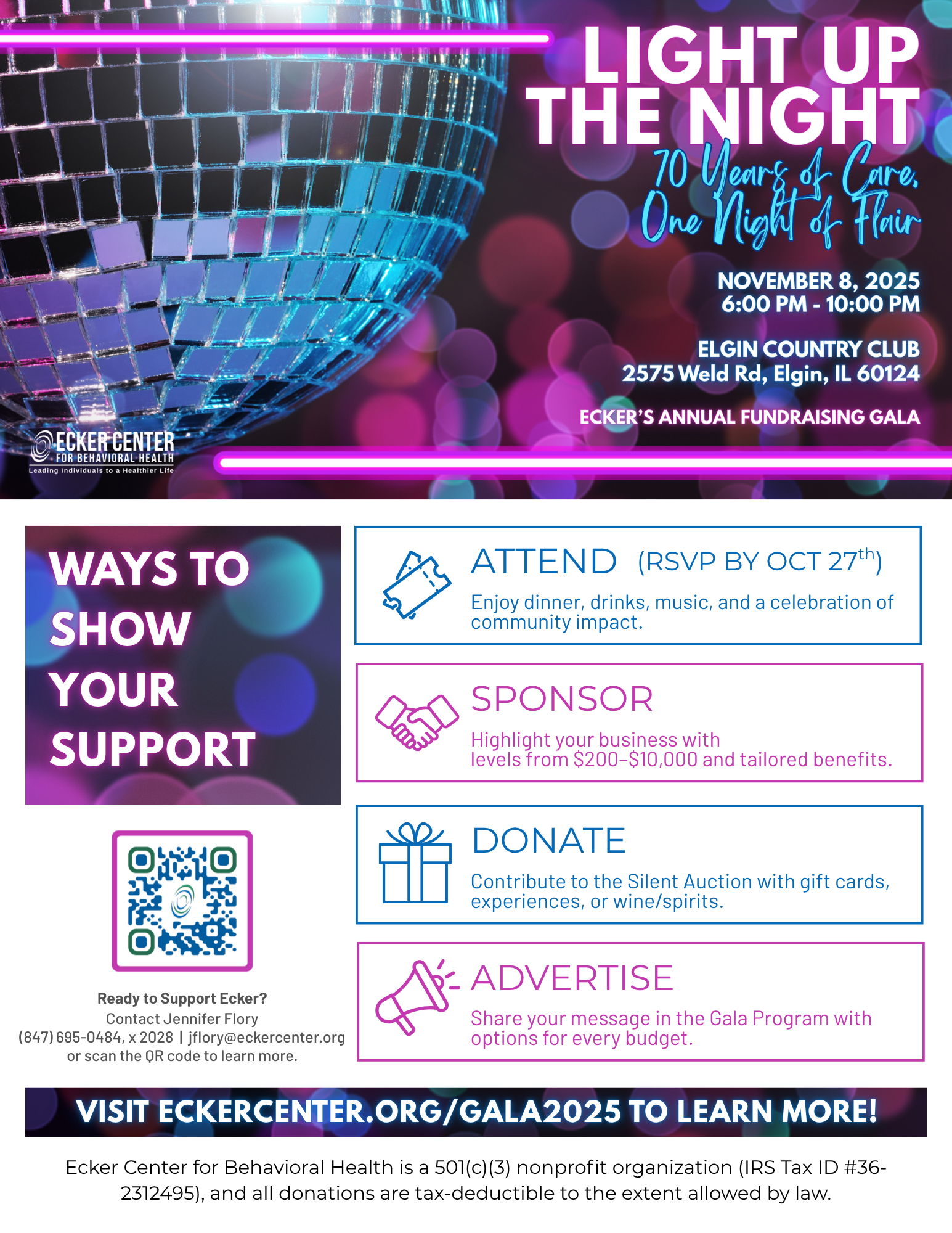 This year marks a milestone — our 70th Anniversary — and we’re celebrating with a special gala event. Join us for Light Up the Night: 70 Years of Care, One Night of Flair, a dazzling evening inspired by the bright spirit of the 1970s. For 70 years, we’ve been a guiding light of care in our community. This gala is more than just a celebration — it’s a fundraiser to support our ongoing efforts and future projects. Your presence helps us keep making a difference. Gala Tickets: