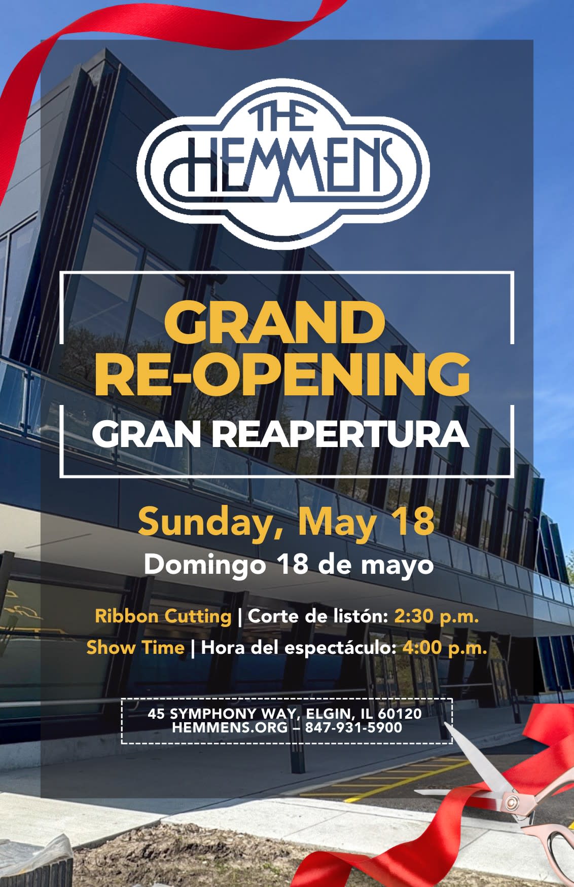 Tras años de planificación, la participación de la comunidad y un proyecto de construcción de tres años recientemente finalizado, el Centro Cultural Hemmens abrirá oficialmente sus puertas al público el Domingo 18 de Mayo para inaugurar una ampliación de $14.4 millones. La celebración comienza a las 2:30 p. m. con la ceremonia de inauguración. Para Más Información: