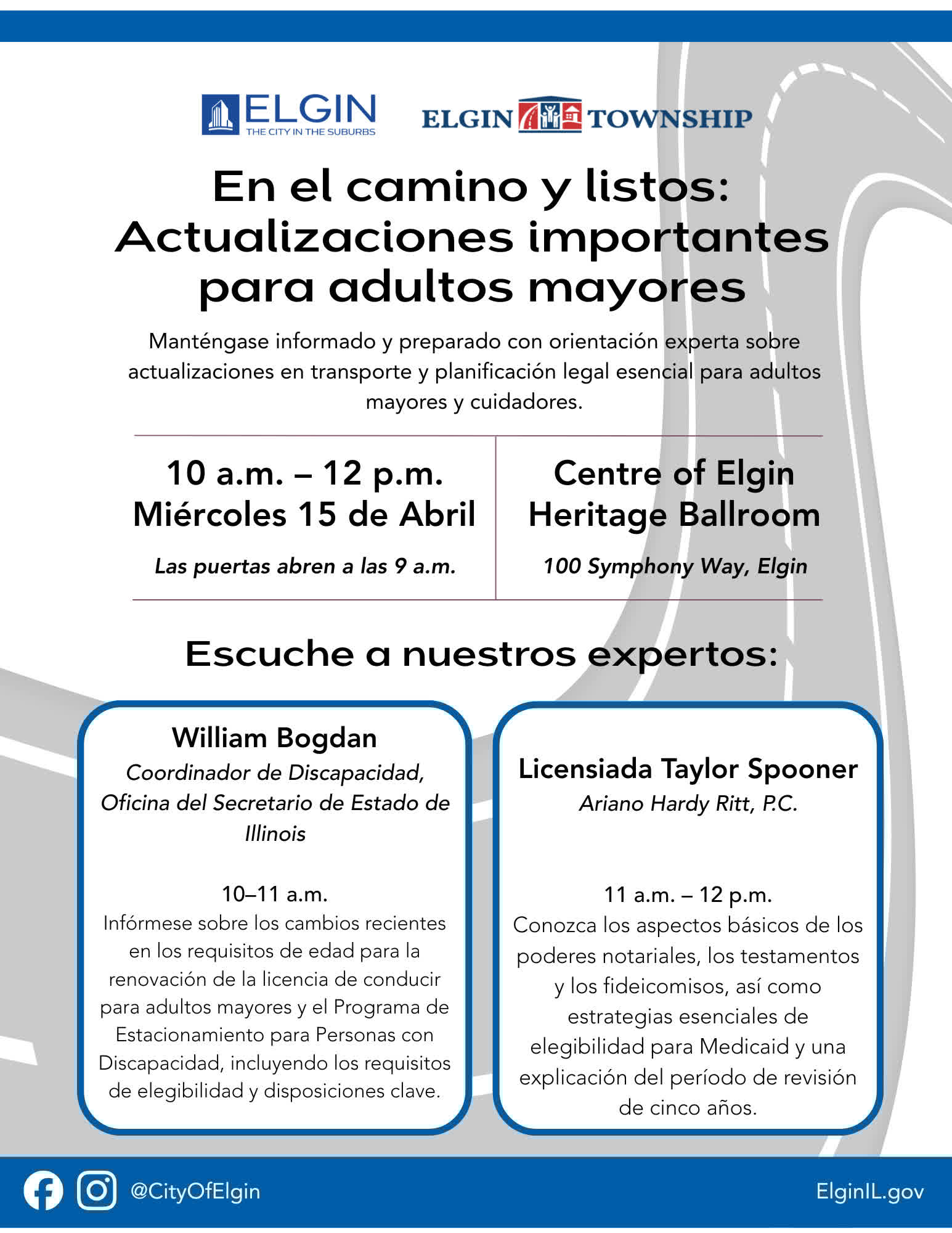 El Departamento de Servicios Vecinales de la Ciudad de Elgin y el Municipio de Elgin organizan conjuntamente el evento «En El Camino Y Listos».