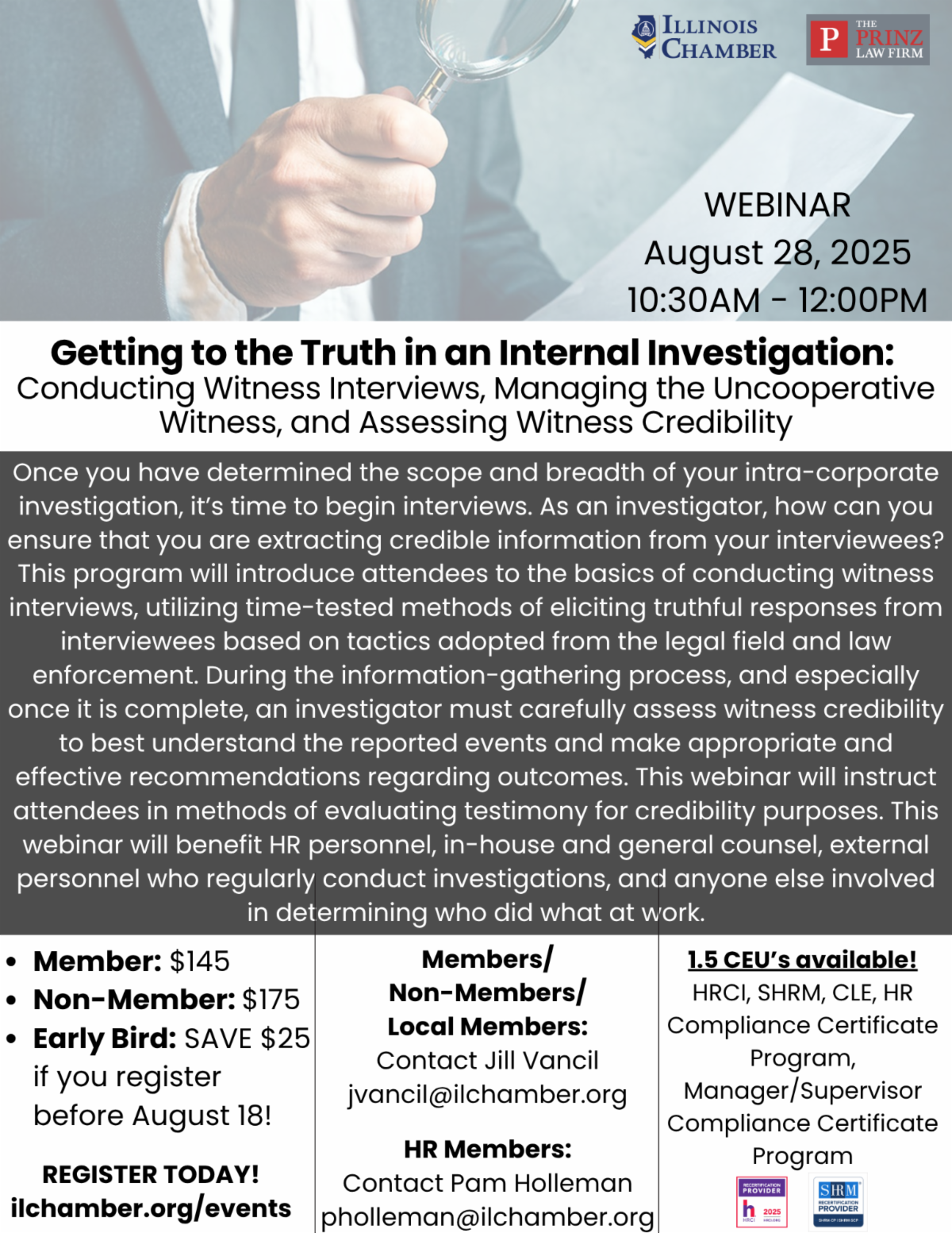 Getting to the Truth in an Internal Investigation: Conducting Witness Interviews, Managing the Uncooperative Witness, and Assessing Witness Credibility. Registration: