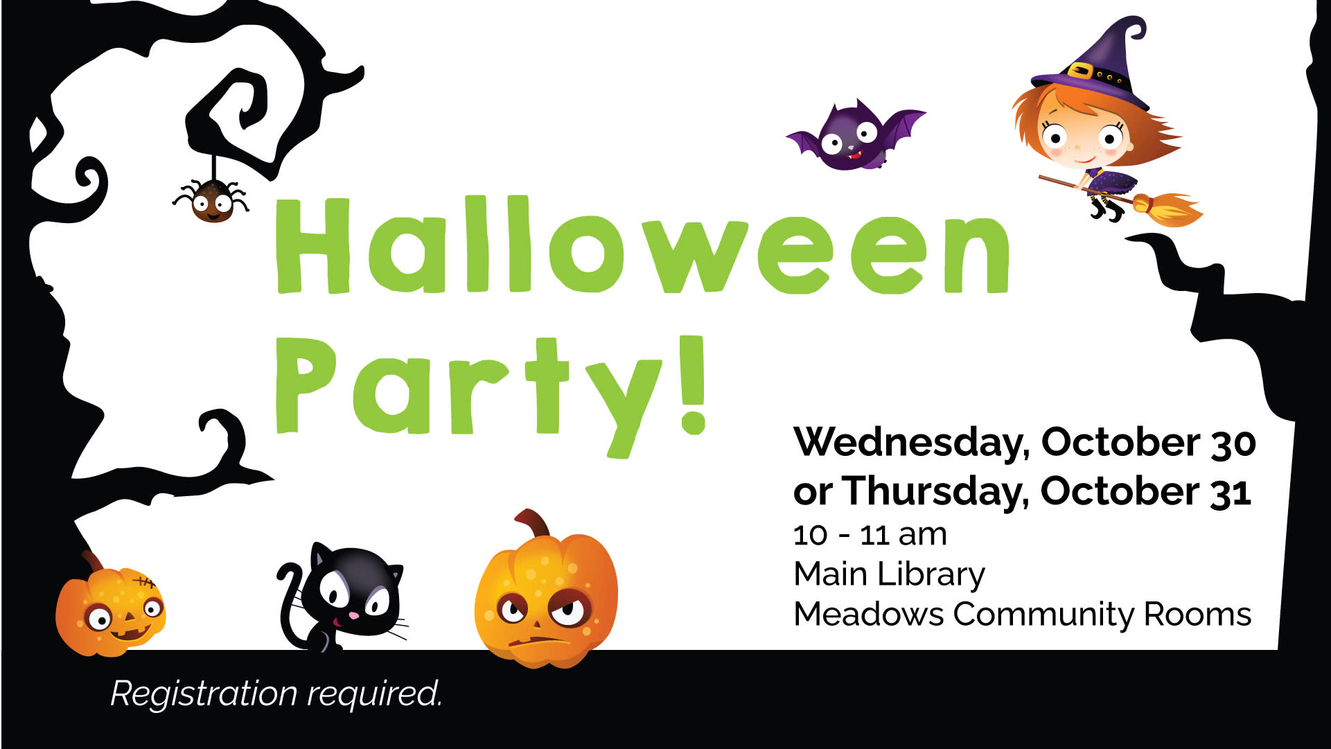 Join us for Halloween family fun. This Halloween party will include stories, activities, and more. We will also trick-or-treat throughout the library.