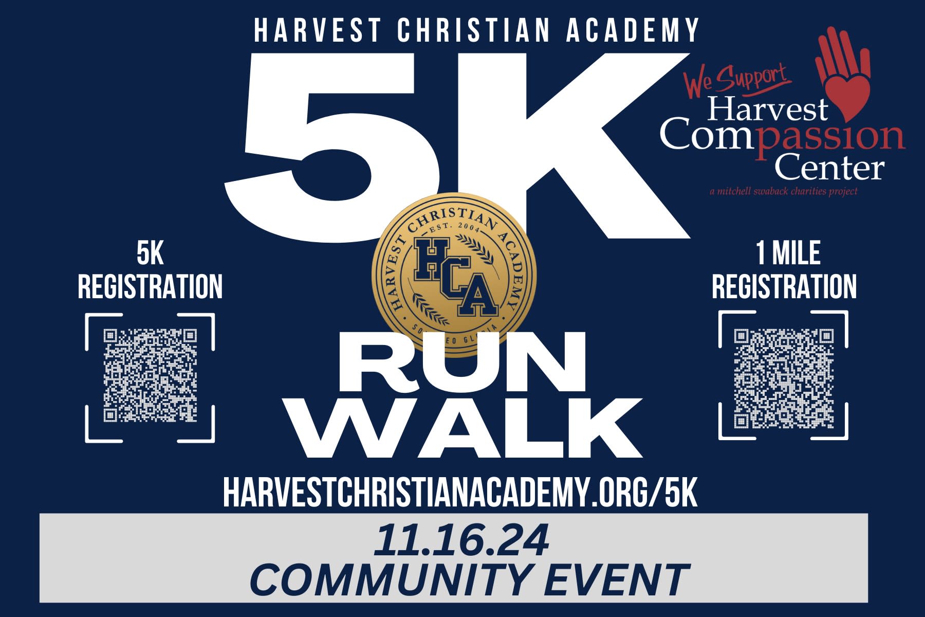 Registration: Sign up today and secure your spot! Visit harvestchristianacademy.org/5K