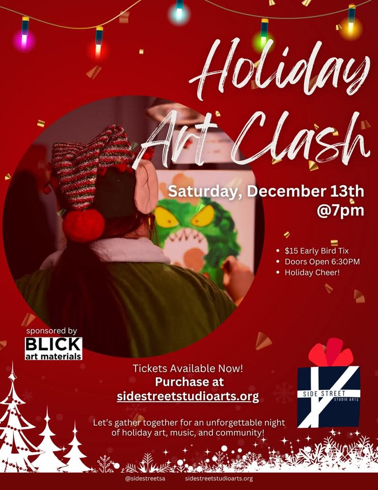 Our Holiday Art Clash will be an exciting holiday-themed live painting competition. Artists will compete through three rounds of live painting, with audience members voting to determine the winner of the final cash prize. $18 suggested donation at the door/$15 online presale.