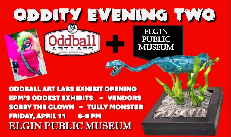 The evening will feature the opening of our new art gallery exhibit... Sobby the Clown... Oddities/Art Vendors... and special looks at some of Elgin Public Museum's most peculiar artifacts and collection items. Event Details.