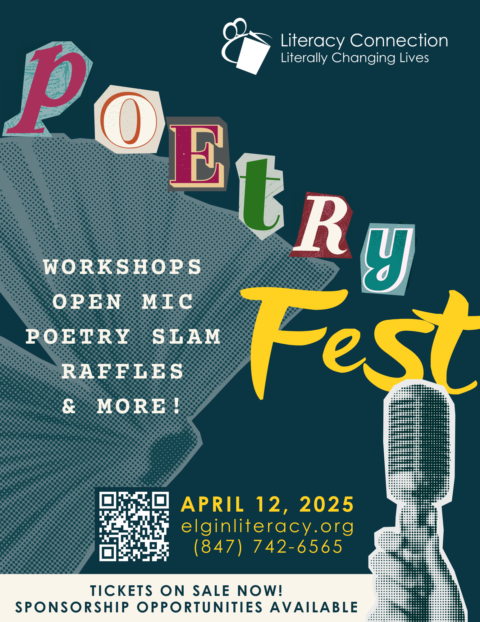 Join The Literacy Connection for our first-ever Poetry and Literacy Festival! This daylong event in Elgin, IL will feature workshop learning and guest speakers, as well as an open mic and Poetry Slam. All are invited to be a part of this celebration of National Poetry Month while raising important funds for our adult literacy work in the community. Tickets: