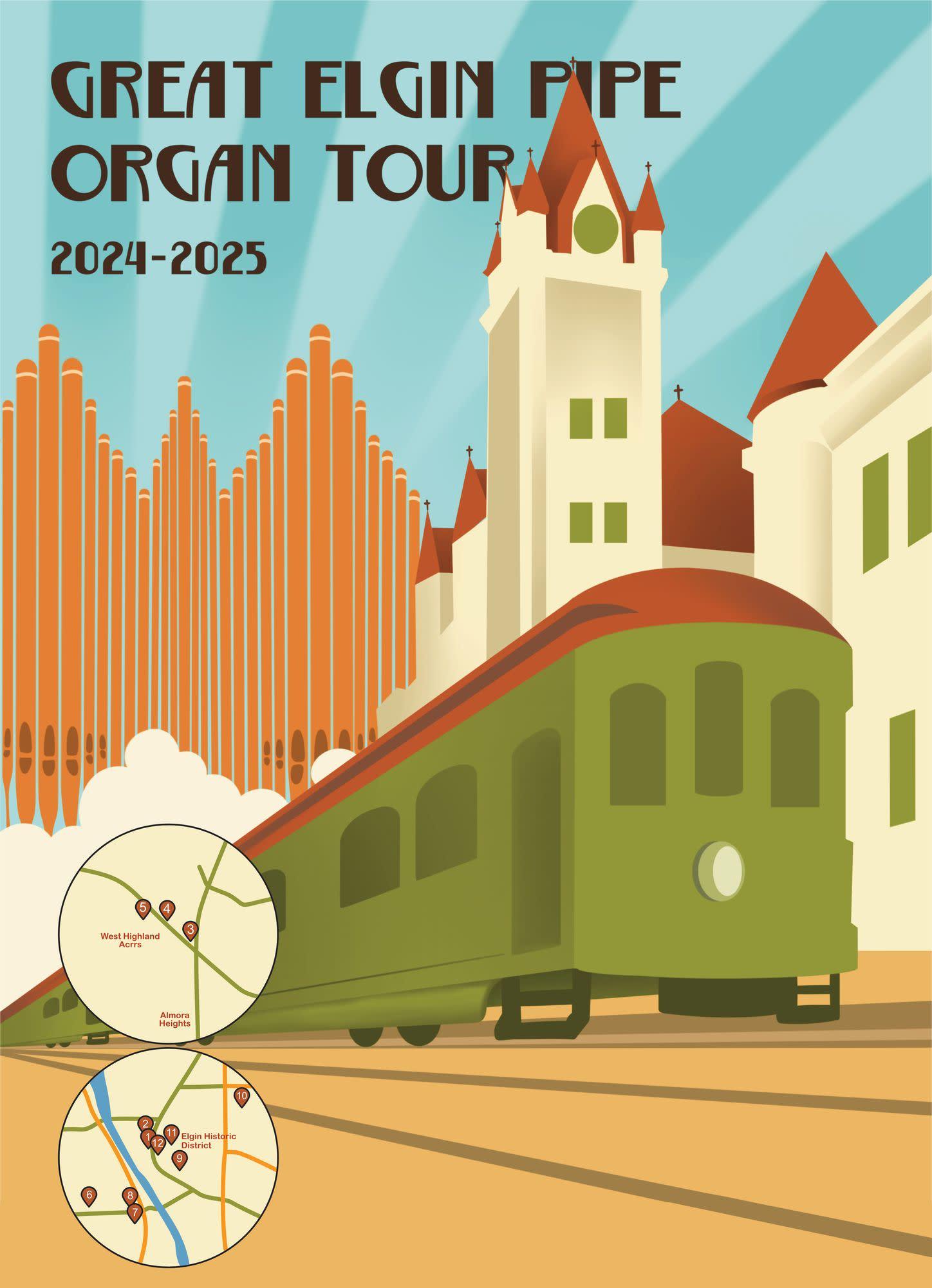 Beginning in September 2024 and continuing through next May, the tour will begin in downtown Elgin, make its way out to the west side, and then loop back into downtown with a finale concert at First Congregational. Along with a wide variety of organ repertoire, some concerts will also feature piano/organ duets, other instrumentalists. and hymn singing.