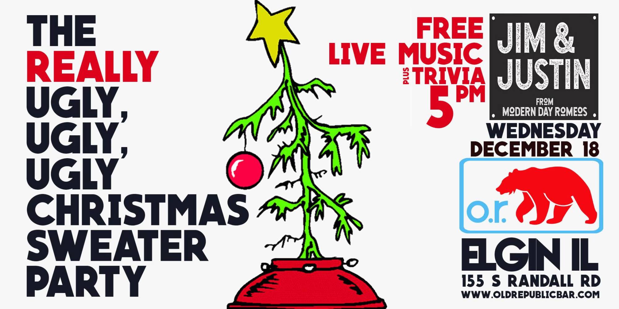 TIS THE SEASON TO BE UGLY! Join Old Republic for our annual UGLY SWEATER PARTY! In our heated Igloo with live music by Jim & Justin from MODERN DAY ROMEOS. Details: