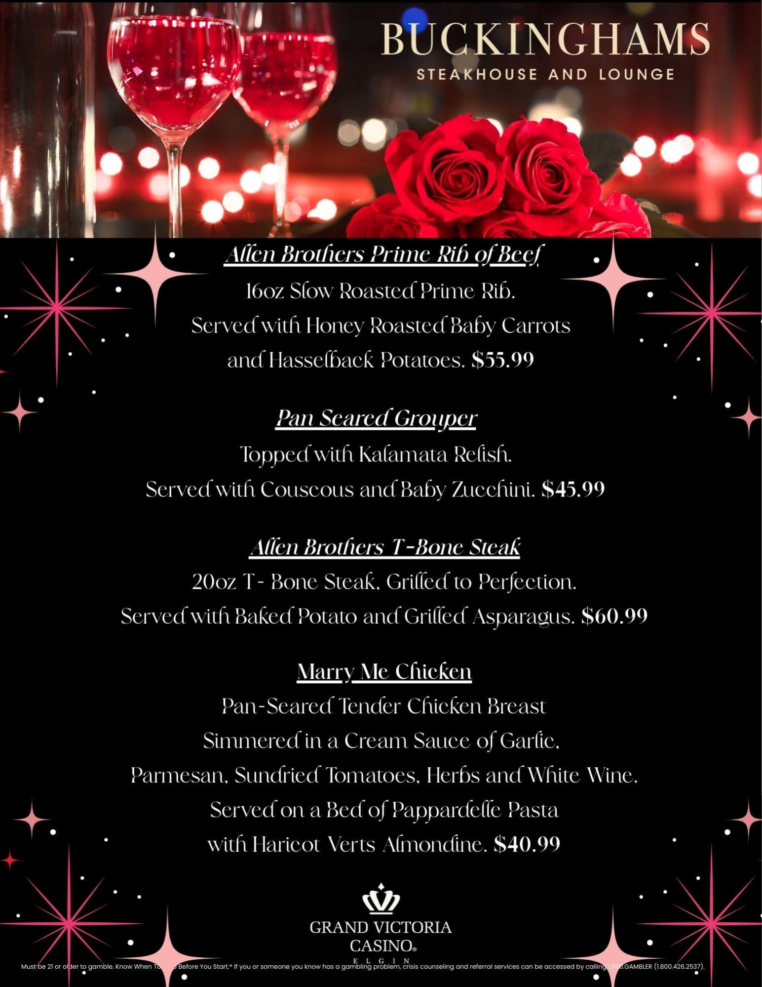 This Valentine’s Day, indulge in an elevated dining experience crafted for romance. Buckinghams Steakhouse & Bistro chefs have created a limited time Valentine’s menu. Reservations suggested: