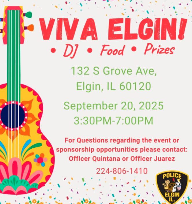 The Elgin Police Department invites you to our upcoming community event on September 20th at Festival Park, from 3:30 PM to 7:00 PM. For more information, please contact our officers at 224-806-1410.