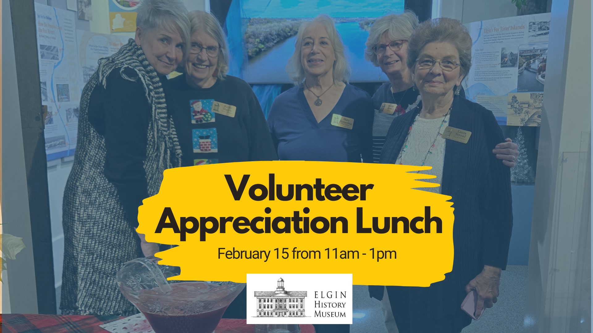 The Elgin History Museum wants to thank our volunteers for their hard work and dedication at the annual Volunteer Appreciation Lunch. Details.