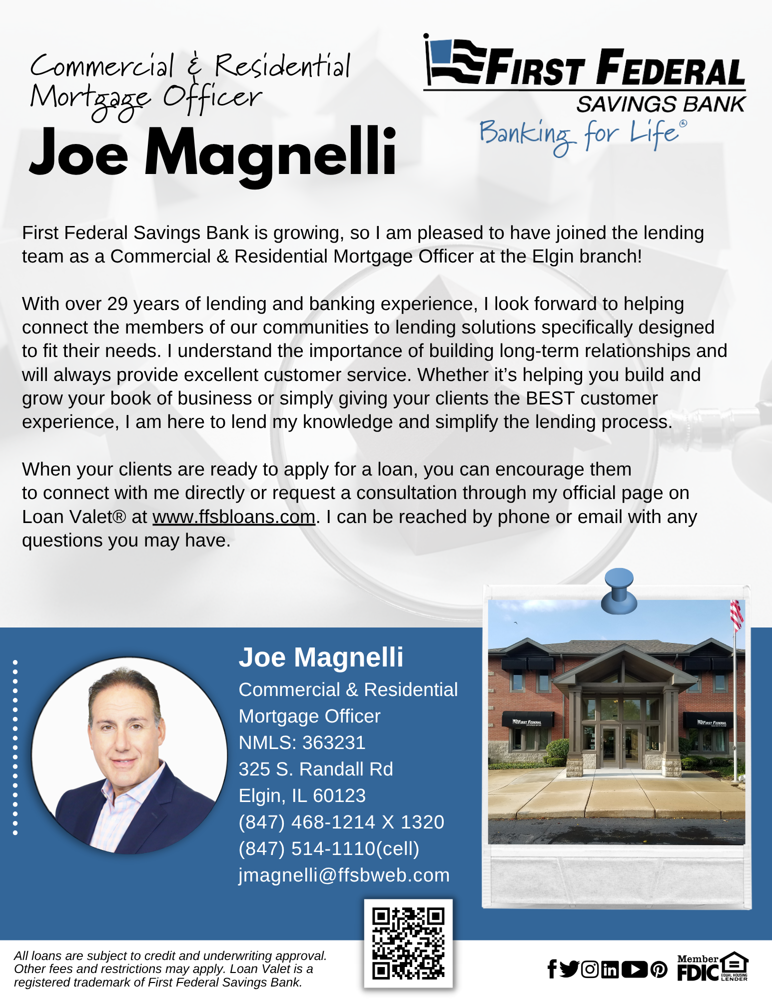 First Federal Savings Bank Welcomes Commercial and Residential Mortgage Officer Joe Magnelli